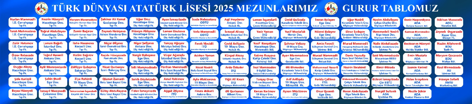Türk Dünyası Bakü Atatürk Lisesi, Türk Dünyası Araştırmaları Vakfı (TDAV) vasıtasıyla Türk Dünyası’nın “Dilde, Fikirde, İşte Birliği” yolunda eğitim, bilim ve kültür faaliyetleri yürüten Prof. Dr. Turan Yazgan’ın girişimleri ve Azerbaycan Bakanlar Kurulu kararıyla 1992 yılında açılmıştır.